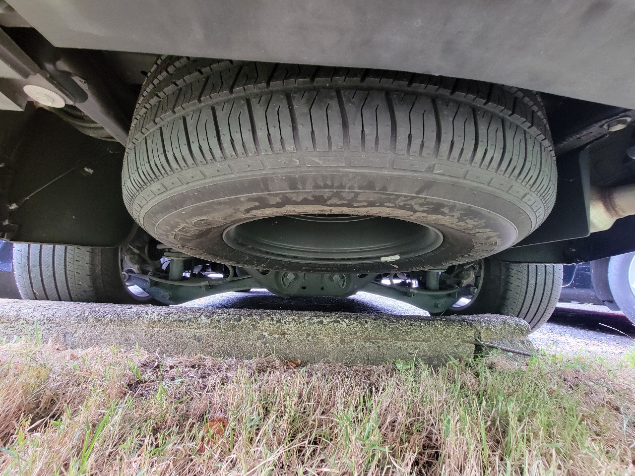 • Tire carrier, lockable outside spare, winch-type mounted under frame at rear